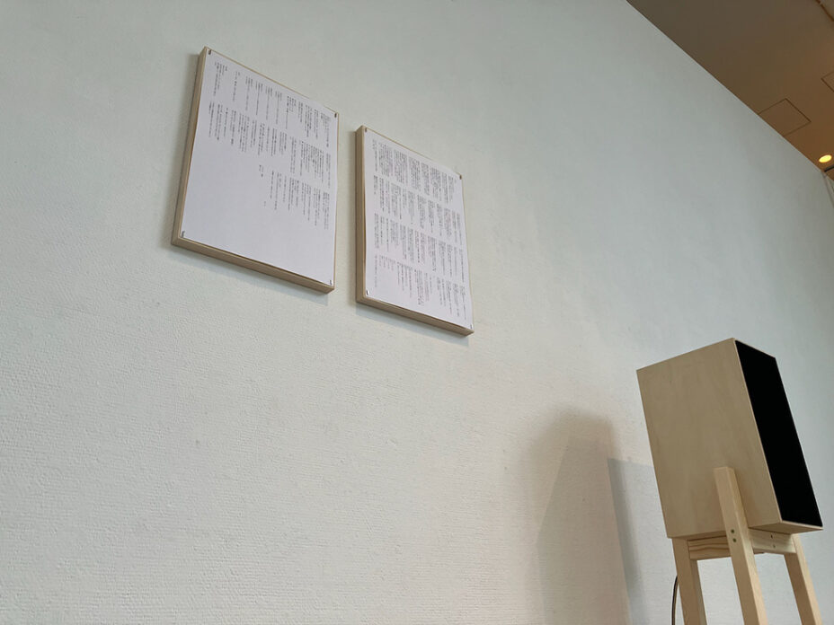 が、今回それ以上に惹きつけられたのは、「多声音楽、声のアーカイブ、音声的再編」という方法論の可能性である。なぜなら被爆当事者が高齢化し、語り部の継承と向き合うHIROSHIMAにとって、人の声とそのあり方は重要な問題であり、本展はそのことに密接に関係していると思われるからである。展示とは別に、広島市被爆体験伝承者の方とトークイベントを開催したことも、その点に重きを置いている証左といって良いだろう。他者の証言と、その証言自体の表現について、新たな視点をもたらすものではなかろうか。冒頭に述べた、今のヒロシマにおける意義はここにあると思う。