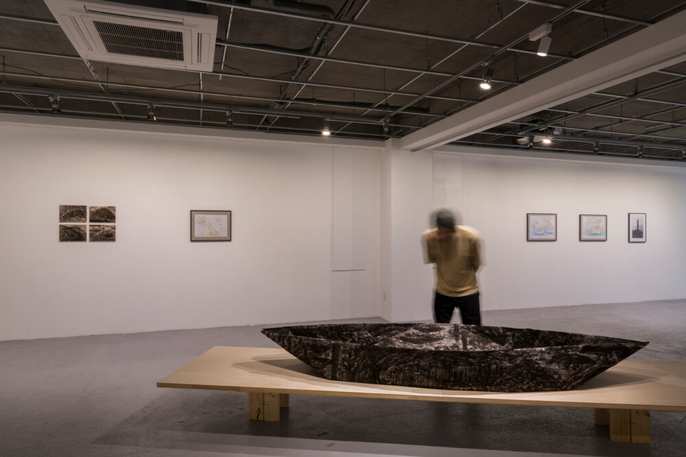 野村由香/NOMURA Yuka 《石炭船》石炭、和紙、接着剤、2025年