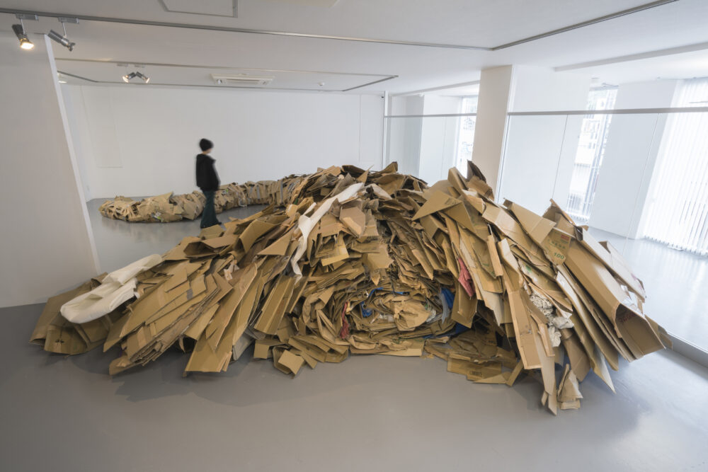 ※本展示では出品されません 野村由香/NOMURA Yuka 《山がうごく》廿日市市・広島市内で回収したダンボール、梱包材、ガムテープ、トタン、ベニヤ板、2023年