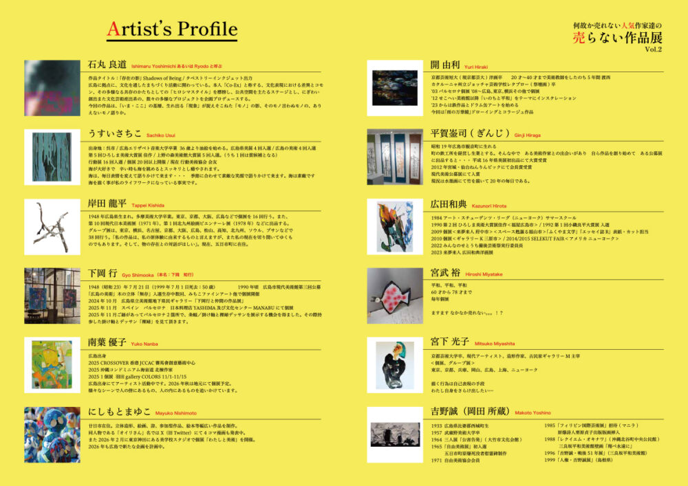 広島出身にてアーティスト活動中です。2026年秋は地元にて個展予定。